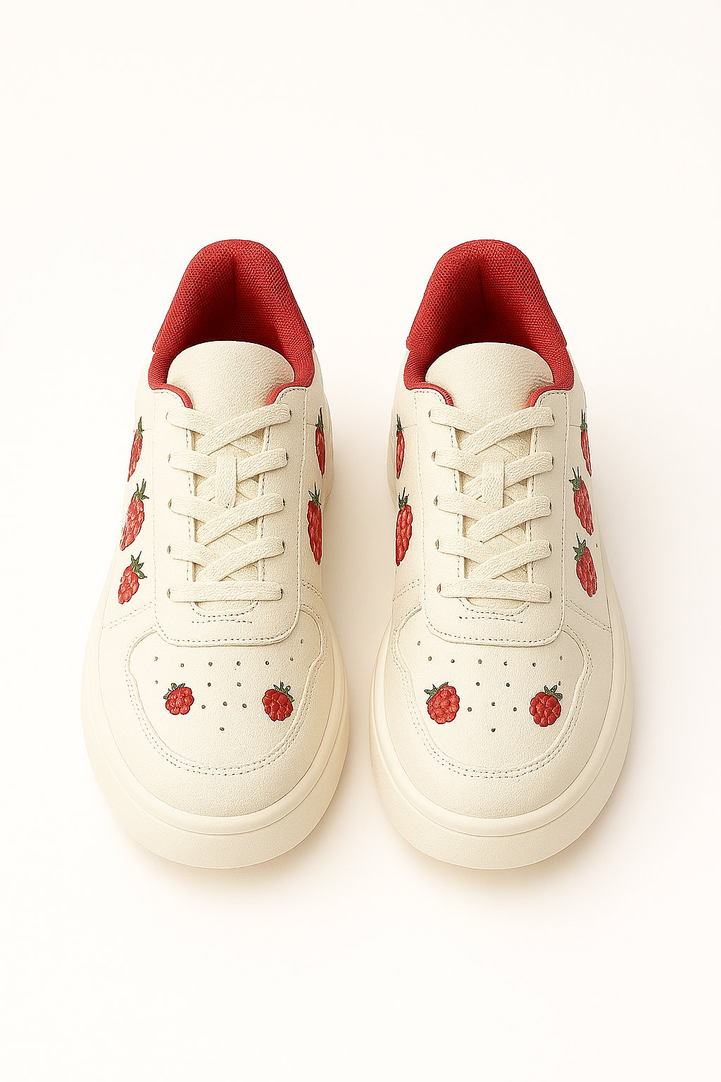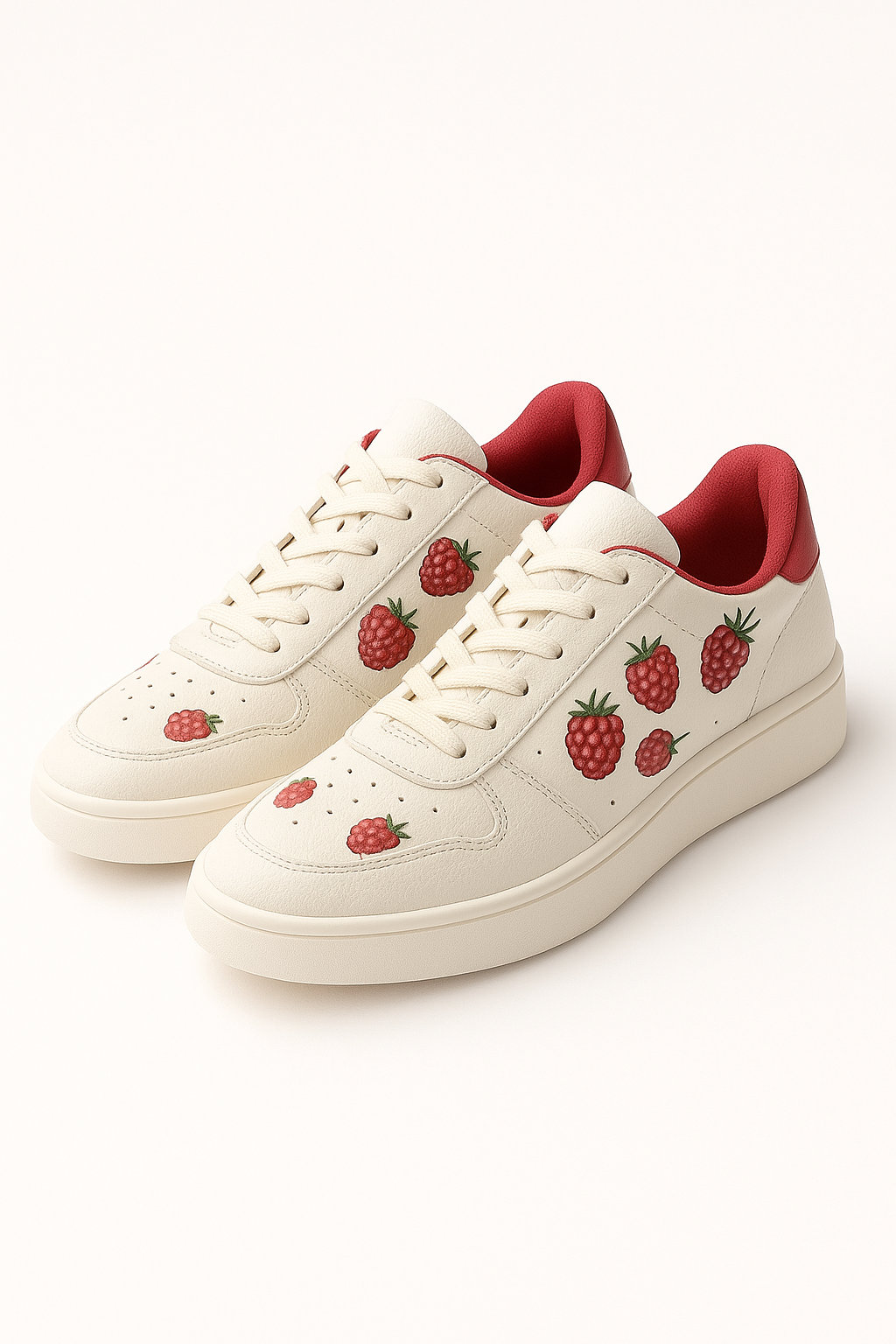 Zanurz się w estetyce, która łączy styl z odrobiną słodyczy. Berry Pop to sneakersy stworzone z myślą o tych, którzy chcą się wyróżniać – nie tylko kolorem, ale i humorem. Kremowa baza w połączeniu z czerwonym wnętrzem i uroczym nadrukiem malin tworzy kompozycję, której nie da się przeoczyć.
